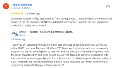Our trained dental IT help desk technicians—working closely with the manufacturer’s technical support team—exhausted all options and quickly determined the issue was caused by a component inside the CBCT unit.